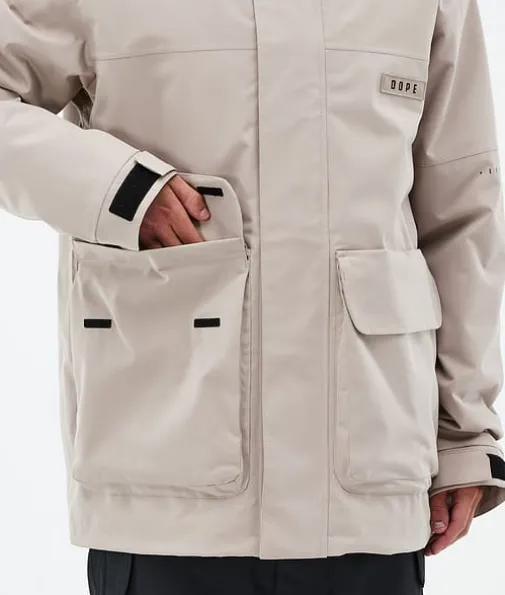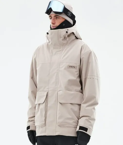 Acme Skijakke Herre Sand|Møt jakken Dope Acme! Acme har strømlinjeformet design, clean, knappeløs front og to store sidelommer, som til sammen er en blanding av funksjonalitet og stil. Den har retro passform som kan brukes som den er, eller strammet med trekksnoren nederst for en kortere, mer firkantet stil. Materialet med 4-veis stretch gir maksimal bevegelsesfrihet, og Acme leverer på alle de viktigste funksjonene du trenger, uten å bli klumpete. Denne jakken er ekstremt allsidig og lett, og er perfekt for en lang sesong på fjellet – dette kan fort bli førstevalget for nye vintereventyr.