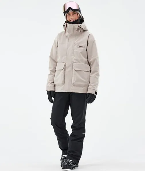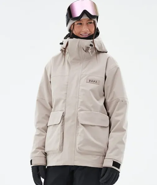 Acme W Skijakke Dame Sand|Møt jakken Dope Acme! Acme har strømlinjeformet design, clean, knappeløs front og to store sidelommer, som til sammen er en blanding av funksjonalitet og stil. Den har retro passform som kan brukes som den er, eller strammet med trekksnoren nederst for en kortere, mer firkantet stil. Materialet med 4-veis stretch gir maksimal bevegelsesfrihet, og Acme leverer på alle de viktigste funksjonene du trenger, uten å bli klumpete. Denne jakken er ekstremt allsidig og lett, og er perfekt for en lang sesong på fjellet – dette kan fort bli førstevalget for nye vintereventyr.