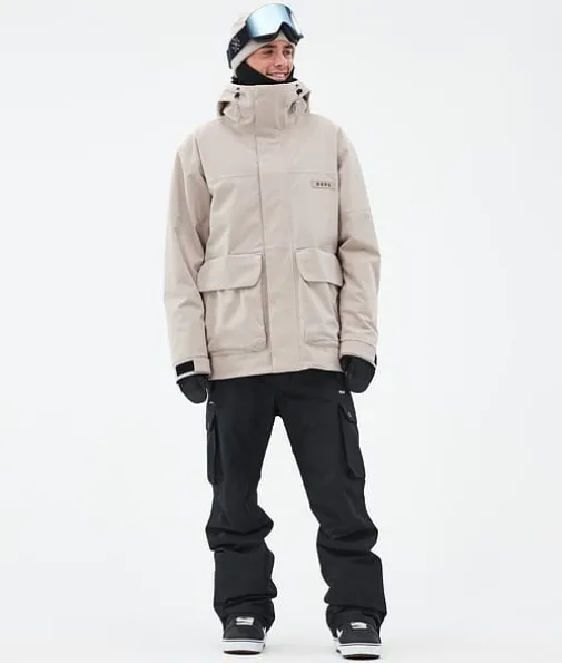 Acme Snowboardjakke Herre Sand|Møt jakken Dope Acme! Acme har strømlinjeformet design, clean, knappeløs front og to store sidelommer, som til sammen er en blanding av funksjonalitet og stil. Den har retro passform som kan brukes som den er, eller strammet med trekksnoren nederst for en kortere, mer firkantet stil. Materialet med 4-veis stretch gir maksimal bevegelsesfrihet, og Acme leverer på alle de viktigste funksjonene du trenger, uten å bli klumpete. Denne jakken er ekstremt allsidig og lett, og er perfekt for en lang sesong på fjellet – dette kan fort bli førstevalget for nye vintereventyr.