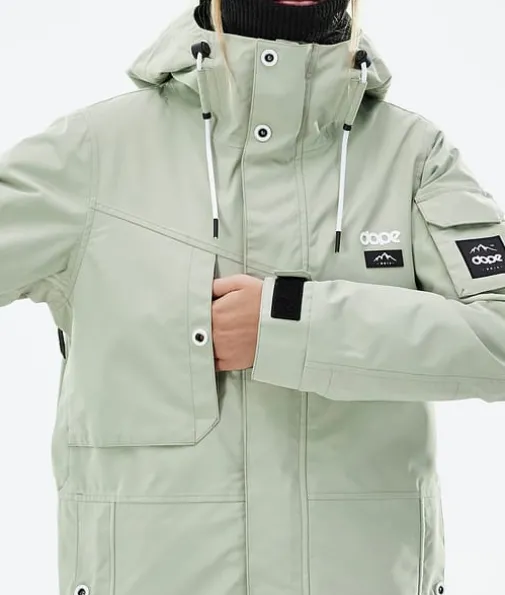 Adept W Snowboardjakke Dame Soft Green|Enkelhet omdefinert. Adept er en pålitelig glidelåsjakke med alle funksjonene du trenger for en lang dag i bakken. Adept er veldig vanntett, holdbart og er designet med tanke på hele fjellet, og er en klassiker i Dope Snow-serien, og med god grunn også. Så ta farvel med å bytte jakker på farten og velg den siste du noen gang vil eie. Når det gjelder å krysse av alle boksene, gjør denne det. En jakke som virkelig kan gjøre alt.