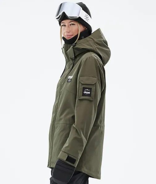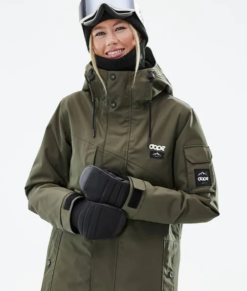 Adept W Skijakke Dame Olive Green/Black|Enkelhet omdefinert. Adept er en pålitelig glidelåsjakke med alle funksjonene du trenger for en lang dag i bakken. Adept er veldig vanntett, holdbart og er designet med tanke på hele fjellet, og er en klassiker i Dope Snow-serien, og med god grunn også. Så ta farvel med å bytte jakker på farten og velg den siste du noen gang vil eie. Når det gjelder å krysse av alle boksene, gjør denne det. En jakke som virkelig kan gjøre alt.