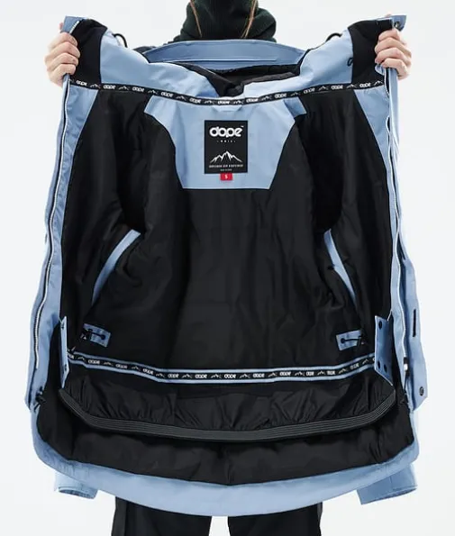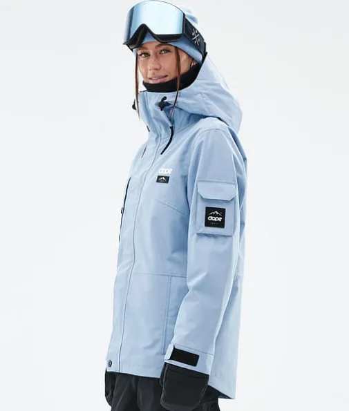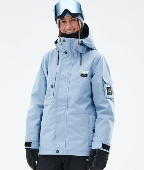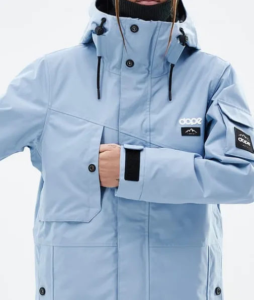 Adept W Snowboardjakke Dame Light Blue|Enkelhet omdefinert. Adept er en pålitelig glidelåsjakke med alle funksjonene du trenger for en lang dag i bakken. Adept er veldig vanntett, holdbart og er designet med tanke på hele fjellet, og er en klassiker i Dope Snow-serien, og med god grunn også. Så ta farvel med å bytte jakker på farten og velg den siste du noen gang vil eie. Når det gjelder å krysse av alle boksene, gjør denne det. En jakke som virkelig kan gjøre alt.
