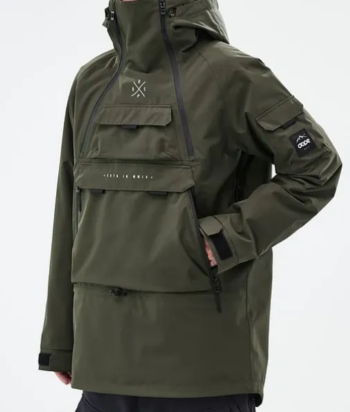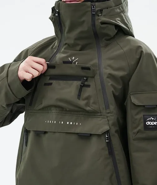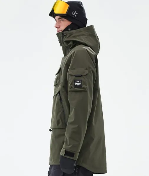 Akin Snowboardjakke Herre Olive Green|Akin er alt du noen gang ønsket deg i en jakke, og mye mer. Vi hentet inspirasjon fra old school-jakker og pyntet denne med syv ytterlommer. Aldri bekymre deg igjen med dette fantastiske designet. Bare zip opp, last opp, og gå inn i det store ukjente. Akin er vanntett og isolert nok til å takle det tøffeste været, og er en enkel parkcruiser og en stor fjellknusing. Mic drop, bare så det er sagt.