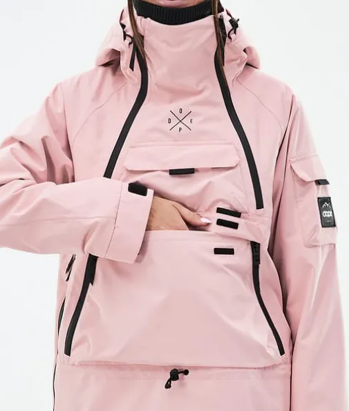 Akin W Skijakke Dame Soft Pink|Akin er alt du noen gang ønsket deg i en jakke, og mye mer. Vi hentet inspirasjon fra old school-jakker og pyntet denne med syv ytterlommer. Aldri bekymre deg igjen med dette fantastiske designet. Bare zip opp, last opp, og gå inn i det store ukjente. Akin er vanntett og isolert nok til å takle det tøffeste været, og er en enkel parkcruiser og en stor fjellknusing. Mic drop, bare så det er sagt.