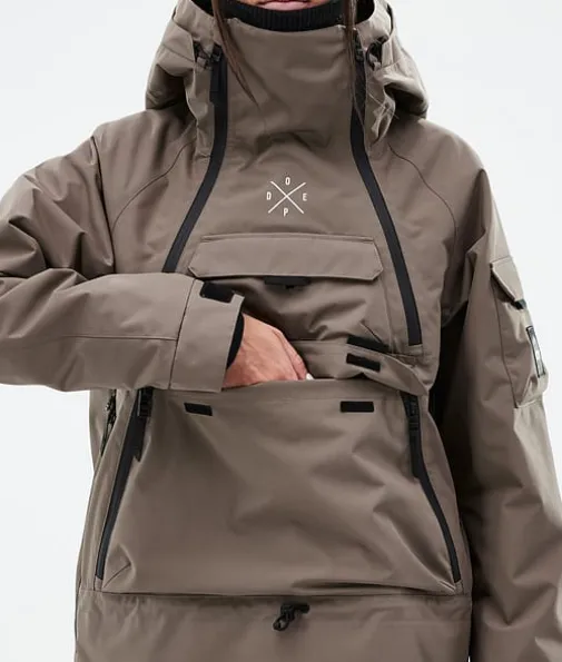Akin W Snowboardjakke Dame Walnut|Akin er alt du noen gang ønsket deg i en jakke, og mye mer. Vi hentet inspirasjon fra old school-jakker og pyntet denne med syv ytterlommer. Aldri bekymre deg igjen med dette fantastiske designet. Bare zip opp, last opp, og gå inn i det store ukjente. Akin er vanntett og isolert nok til å takle det tøffeste været, og er en enkel parkcruiser og en stor fjellknusing. Mic drop, bare så det er sagt.