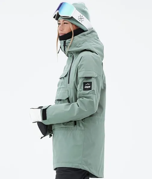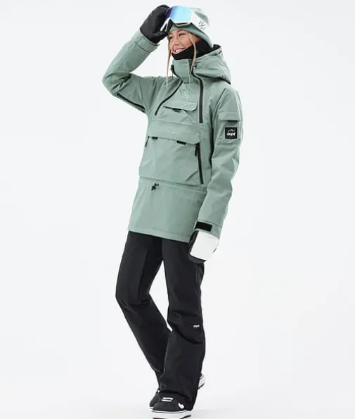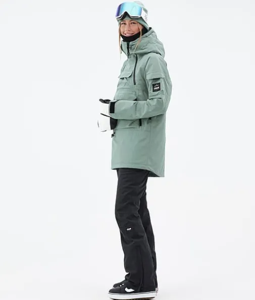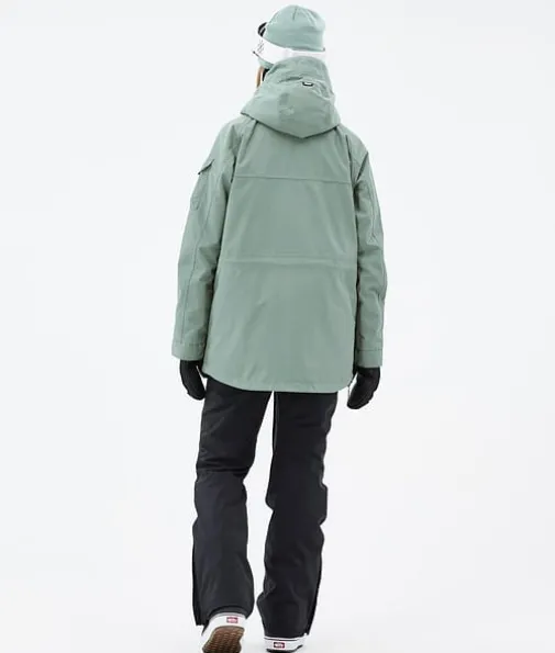 Akin W Snowboardjakke Dame Faded Green|Akin er alt du noen gang ønsket deg i en jakke, og mye mer. Vi hentet inspirasjon fra old school-jakker og pyntet denne med syv ytterlommer. Aldri bekymre deg igjen med dette fantastiske designet. Bare zip opp, last opp, og gå inn i det store ukjente. Akin er vanntett og isolert nok til å takle det tøffeste været, og er en enkel parkcruiser og en stor fjellknusing. Mic drop, bare så det er sagt.