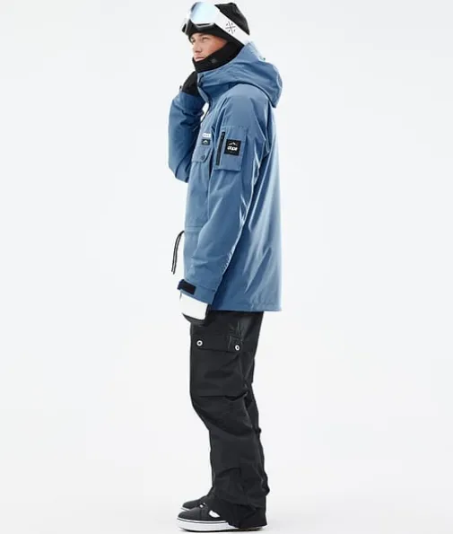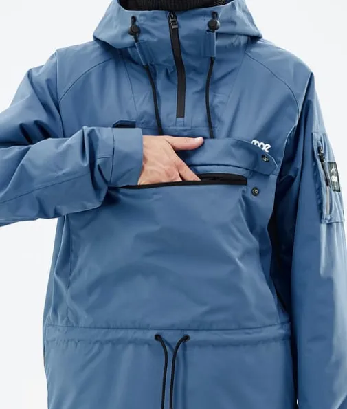 Annok Snowboardjakke Herre Blue Steel|Dopes helt egen signaturstil, Annok stormer tilbake på lager i år for nok en gang å herske over alle andre anorakker. Vi ga den vanntetting og isolering for å takle alt fjellet har å by på, og mange flotte små detaljer som kontraststrenger og trippel lommesystem. Dette gjør Annok til en seriøs street-inspirert anorak som er klar til å yte i både parken og i pudderet, og den ser fantastisk ut.