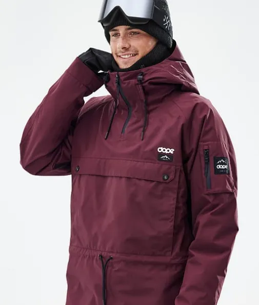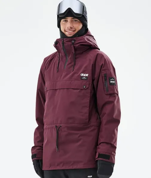Annok Snowboardjakke Herre Don Burgundy|Dopes helt egen signaturstil, Annok stormer tilbake på lager i år for nok en gang å herske over alle andre anorakker. Vi ga den vanntetting og isolering for å takle alt fjellet har å by på, og mange flotte små detaljer som kontraststrenger og trippel lommesystem. Dette gjør Annok til en seriøs street-inspirert anorak som er klar til å yte i både parken og i pudderet, og den ser fantastisk ut.