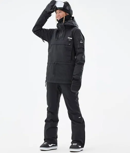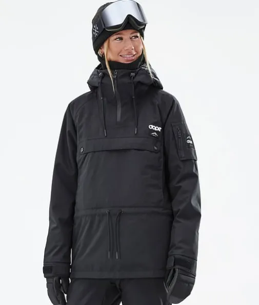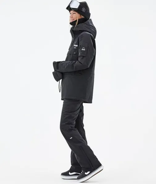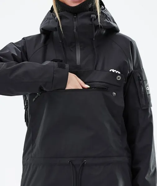 Annok W Snowboardjakke Dame Blackout|Dopes helt egen signaturstil, Annok stormer tilbake på lager i år for nok en gang å herske over alle andre anorakker. Vi ga den vanntetting og isolering for å takle alt fjellet har å by på, og mange flotte små detaljer som kontraststrenger og trippel lommesystem. Dette gjør Annok til en seriøs street-inspirert anorak som er klar til å yte i både parken og i pudderet, og den ser fantastisk ut.