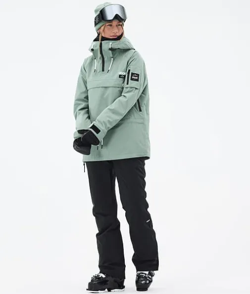 Annok W Skijakke Dame Faded Green|Dopes helt egen signaturstil, Annok stormer tilbake på lager i år for nok en gang å herske over alle andre anorakker. Vi ga den vanntetting og isolering for å takle alt fjellet har å by på, og mange flotte små detaljer som kontraststrenger og trippel lommesystem. Dette gjør Annok til en seriøs street-inspirert anorak som er klar til å yte i både parken og i pudderet, og den ser fantastisk ut.