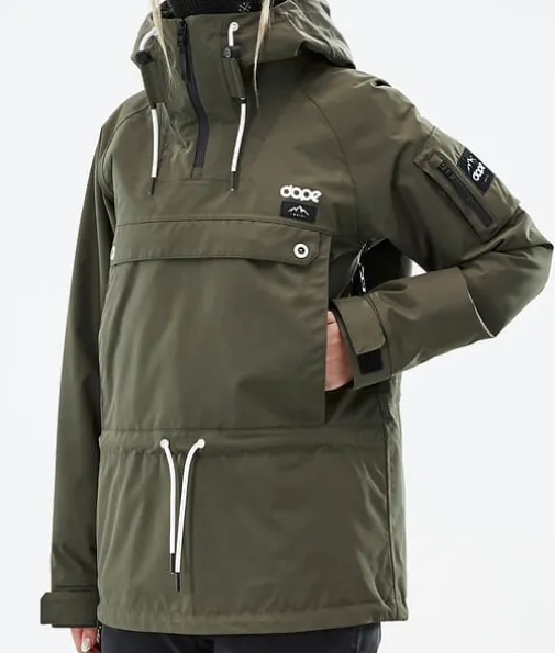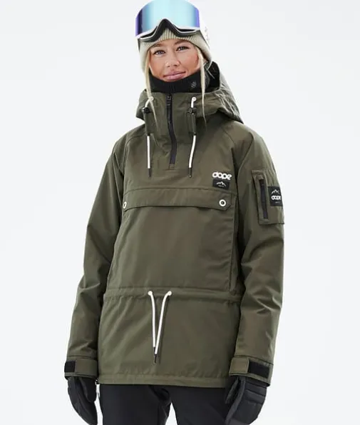 Annok W Skijakke Dame Olive Green|Dopes helt egen signaturstil, Annok stormer tilbake på lager i år for nok en gang å herske over alle andre anorakker. Vi ga den vanntetting og isolering for å takle alt fjellet har å by på, og mange flotte små detaljer som kontraststrenger og trippel lommesystem. Dette gjør Annok til en seriøs street-inspirert anorak som er klar til å yte i både parken og i pudderet, og den ser fantastisk ut.