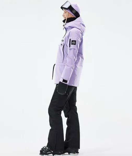 Annok W Skijakke Dame Faded Violet|Dopes helt egen signaturstil, Annok stormer tilbake på lager i år for nok en gang å herske over alle andre anorakker. Vi ga den vanntetting og isolering for å takle alt fjellet har å by på, og mange flotte små detaljer som kontraststrenger og trippel lommesystem. Dette gjør Annok til en seriøs street-inspirert anorak som er klar til å yte i både parken og i pudderet, og den ser fantastisk ut.