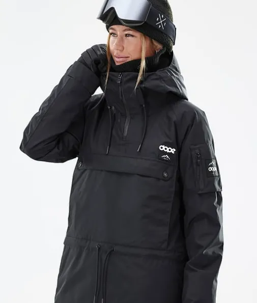 Annok W Skijakke Dame Blackout|Dopes helt egen signaturstil, Annok stormer tilbake på lager i år for nok en gang å herske over alle andre anorakker. Vi ga den vanntetting og isolering for å takle alt fjellet har å by på, og mange flotte små detaljer som kontraststrenger og trippel lommesystem. Dette gjør Annok til en seriøs street-inspirert anorak som er klar til å yte i både parken og i pudderet, og den ser fantastisk ut.