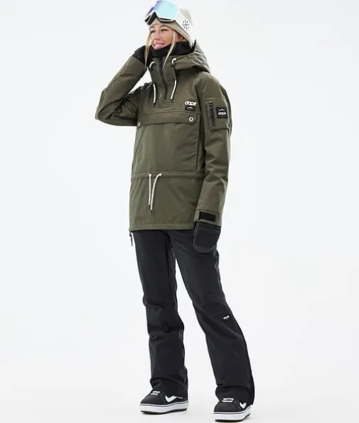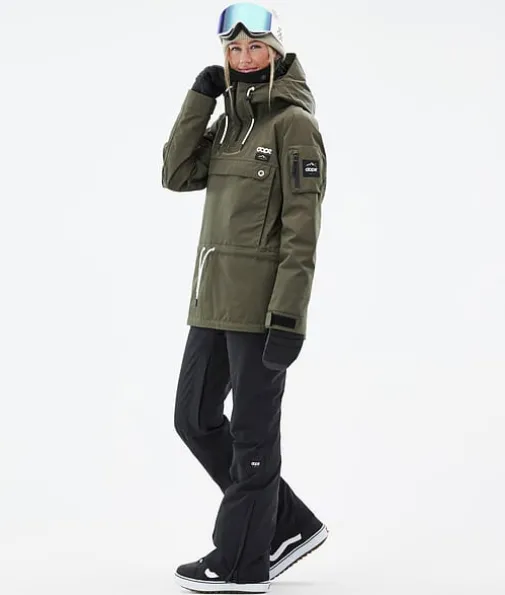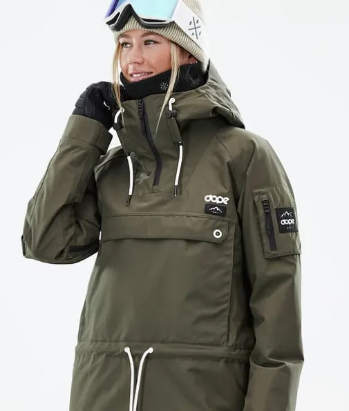 Annok W Snowboardjakke Dame Olive Green|Dopes helt egen signaturstil, Annok stormer tilbake på lager i år for nok en gang å herske over alle andre anorakker. Vi ga den vanntetting og isolering for å takle alt fjellet har å by på, og mange flotte små detaljer som kontraststrenger og trippel lommesystem. Dette gjør Annok til en seriøs street-inspirert anorak som er klar til å yte i både parken og i pudderet, og den ser fantastisk ut.