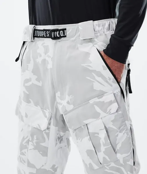 Antek Snowboardbukse Herre Grey Camo| Antek er en avslappet kjørebukse som er lav i skrittet, med en stil som er inspirert av arbeidsklær. Den har et svært slitesterkt vevd nylonskall, store ventilasjonsglidelåser, elastiske falder og cargo-lommer i fronten, hvilket gir en unik look du bare får med disse buksene. De er laget for parken, men de slår også godt fra seg ved frikjøring. Disse superkomfortable buksene har tekniske kvaliteter som tåler heftig vær, og har alle funksjonene du trenger for lange dager i fjellet.