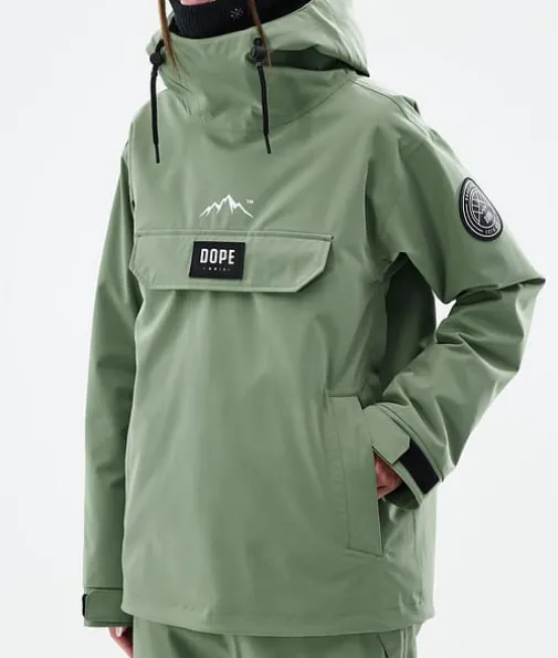 Blizzard W Snowboardjakke Dame Moss Green|Er du på jakt etter den perfekte miksen av hettegenser og skijakke? Da har du kommet til riktig sted! Du vil ha egenskapene og muligheten til å kjøre overalt i fjellet, uten at det blir klumpete. Det er derfor vi har laget Blizzard. Den er fullpakket med alle de viktigste funksjonene og teknologien du trenger for både skibakken og løssnøen, og denne lette og vanntette pullover-jakken er det beste valget for minimalististe kjører som vil ha maks ut av tiden på fjellet. Når du i tillegg får et ekstremt slitesterkt ytterskall med fireveis stretch, har du en kraftpakke av ytelse og komfort, som er meget populær hos både kjørere og team, uansett vær.