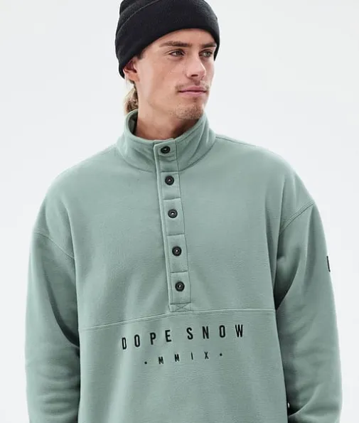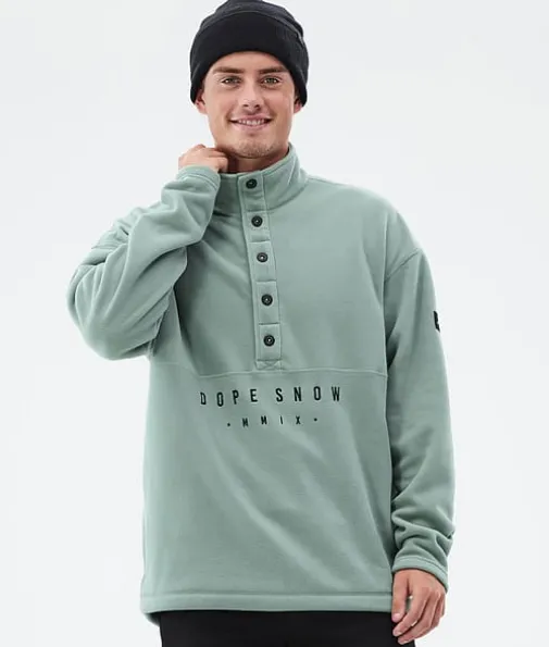Comfy Fleecegenser Herre Faded Green|Med Comfy-genseren er du garantert komfort, takket være en fleecekonstruksjon i 250 g/m2 100 % resirkulert polyester som holder på varmen i all slags vær. Med en stilig design med knapper og høy hals er denne fleeceen ideell for å kose seg i bakkene eller slappe av hjemme. Dette supermyke materialet er behagelig mot huden, og de elastiske endelinningene sikrer god passform og varme. Forskjøvede skuldersømmer reduserer friksjon mens du kjører, og kule Dope-detaljer gir ekstra stilpoeng uansett hvor du skal, noe som gjør Comfy til din nye favoritt denne sesongen.