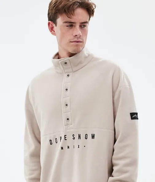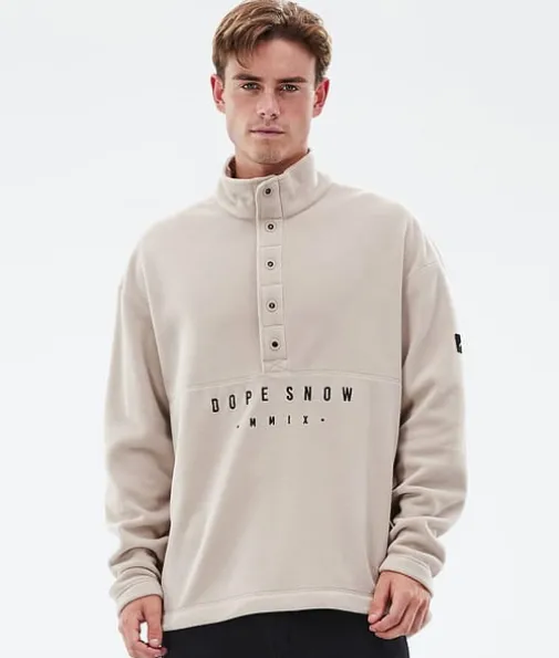 Comfy Fleecegenser Herre Sand|Med Comfy-genseren er du garantert komfort, takket være en fleecekonstruksjon i 250 g/m2 100 % resirkulert polyester som holder på varmen i all slags vær. Med en stilig design med knapper og høy hals er denne fleeceen ideell for å kose seg i bakkene eller slappe av hjemme. Dette supermyke materialet er behagelig mot huden, og de elastiske endelinningene sikrer god passform og varme. Forskjøvede skuldersømmer reduserer friksjon mens du kjører, og kule Dope-detaljer gir ekstra stilpoeng uansett hvor du skal, noe som gjør Comfy til din nye favoritt denne sesongen.