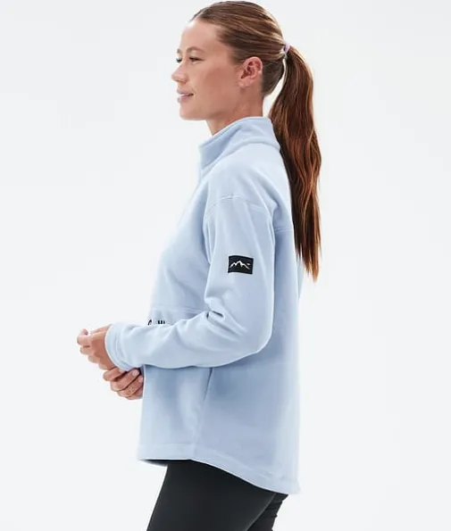 Comfy W Fleecegenser Dame Light Blue|Med Comfy-genseren er du garantert komfort, takket være en fleecekonstruksjon i 250 g/m2 100 % resirkulert polyester som holder på varmen i all slags vær. Med en stilig design med knapper og høy hals er denne fleeceen ideell for å kose seg i bakkene eller slappe av hjemme. Dette supermyke materialet er behagelig mot huden, og de elastiske endelinningene sikrer god passform og varme. Forskjøvede skuldersømmer reduserer friksjon mens du kjører, og kule Dope-detaljer gir ekstra stilpoeng uansett hvor du skal, noe som gjør Comfy til din nye favoritt denne sesongen.