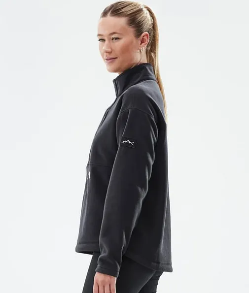 Comfy W Fleecegenser Dame Black|Med Comfy-genseren er du garantert komfort, takket være en fleecekonstruksjon i 250 g/m2 100 % resirkulert polyester som holder på varmen i all slags vær. Med en stilig design med knapper og høy hals er denne fleeceen ideell for å kose seg i bakkene eller slappe av hjemme. Dette supermyke materialet er behagelig mot huden, og de elastiske endelinningene sikrer god passform og varme. Forskjøvede skuldersømmer reduserer friksjon mens du kjører, og kule Dope-detaljer gir ekstra stilpoeng uansett hvor du skal, noe som gjør Comfy til din nye favoritt denne sesongen.