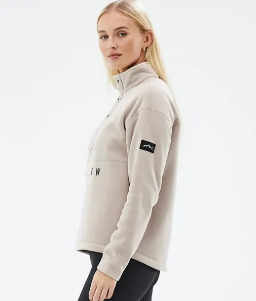 Comfy W Fleecegenser Dame Sand|Med Comfy-genseren er du garantert komfort, takket være en fleecekonstruksjon i 250 g/m2 100 % resirkulert polyester som holder på varmen i all slags vær. Med en stilig design med knapper og høy hals er denne fleeceen ideell for å kose seg i bakkene eller slappe av hjemme. Dette supermyke materialet er behagelig mot huden, og de elastiske endelinningene sikrer god passform og varme. Forskjøvede skuldersømmer reduserer friksjon mens du kjører, og kule Dope-detaljer gir ekstra stilpoeng uansett hvor du skal, noe som gjør Comfy til din nye favoritt denne sesongen.