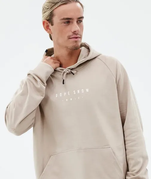 Common Hood Herre Silhouette Sand|Common-hettegenseren er alt annet enn ordinær. Common-hettegenseren er behagelig, myk og kan brukes til alt, og den er laget av 100 % økologisk bomull med et kraftig 400 g/m² Oekotex 100-sertifisert frottéløkke-fleecestoff for optimal varme og allsidighet hele sesongen. Denne hettegenseren har mange glatte Dope-detaljer, og den er det ultimate innen både stil og bruk.