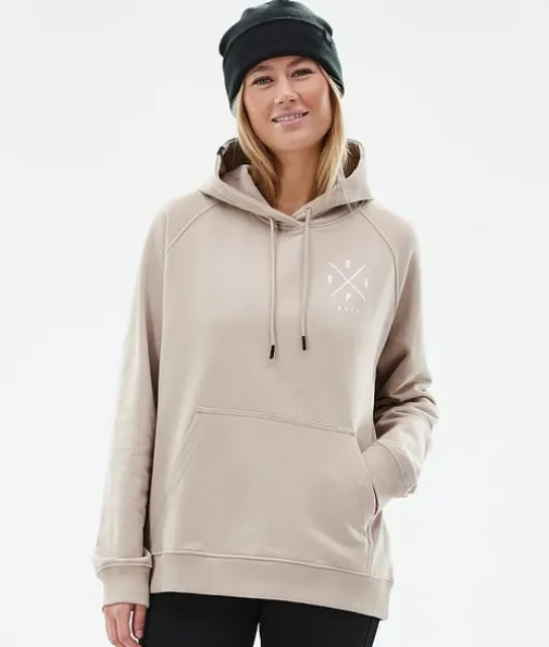 Common W Hood Dame 2X-Up Sand|Common-hettegenseren er alt annet enn ordinær. Common-hettegenseren er behagelig, myk og kan brukes til alt, og den er laget av 100 % økologisk bomull med et kraftig 400 g/m² Oekotex 100-sertifisert frottéløkke-fleecestoff for optimal varme og allsidighet hele sesongen. Denne hettegenseren har mange glatte Dope-detaljer, og den er det ultimate innen både stil og bruk.