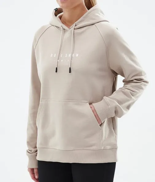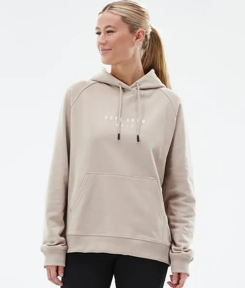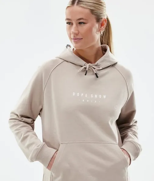 Common W Hood Dame Silhouette Sand|Common-hettegenseren er alt annet enn ordinær. Common-hettegenseren er behagelig, myk og kan brukes til alt, og den er laget av 100 % økologisk bomull med et kraftig 400 g/m² Oekotex 100-sertifisert frottéløkke-fleecestoff for optimal varme og allsidighet hele sesongen. Denne hettegenseren har mange glatte Dope-detaljer, og den er det ultimate innen både stil og bruk.