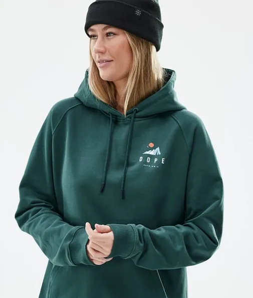Common W Hood Dame Ice Bottle Green|Common-hettegenseren er alt annet enn ordinær. Common-hettegenseren er behagelig, myk og kan brukes til alt, og den er laget av 100 % økologisk bomull med et kraftig 400 g/m² Oekotex 100-sertifisert frottéløkke-fleecestoff for optimal varme og allsidighet hele sesongen. Denne hettegenseren har mange glatte Dope-detaljer, og den er det ultimate innen både stil og bruk.