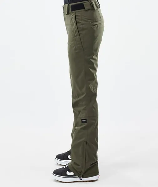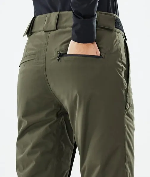 Con W Snowboardbukse Dame Olive Green|Con-buksene blander form og funksjon på en perfekt måte, og det er gode grunner til at de er en favoritt for teamet og rytterne. Denne buksen er spesiell fordi den ikke bare har den smale, ettersittende passformen du har ønsket deg, men er også superkomfortabel og gir total bevegelsesfrihet takket være det forbedrede toveis stretch-skallmaterialet. Så du får fortsatt den smale profilen, men uten å hale og dra i stoffet, noe som gjør Con til det optimale paret med slimfit-bukser for fjellet.