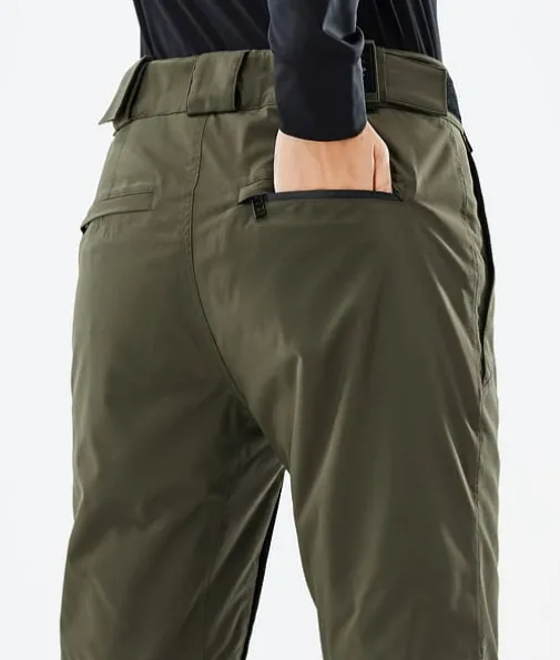 Con W 2022 Snowboardbukse Dame Olive Green|Con-buksene blander perfekt form og funksjon, og er en lagfavoritt med god grunn. Disse buksene er spesielle fordi de ikke bare har den smale, ettersittende passformen du har ønsket deg, men er også superkomfortable og gir total bevegelsesfrihet takket være vårt forbedrede 2-veis stretch-skallmateriale. Så du får fortsatt den smale profilen, men uten å hale og dra i stoffet, noe som gjør Con til det ultimate paret med slimfit-bukser for fjellet. Værsågod.
