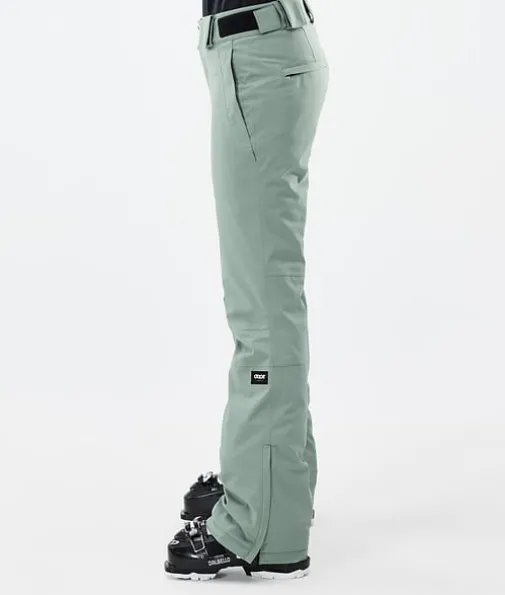Con W Skibukse Dame Faded Green|Con-buksene blander form og funksjon på en perfekt måte, og det er gode grunner til at de er en favoritt for teamet og rytterne. Denne buksen er spesiell fordi den ikke bare har den smale, ettersittende passformen du har ønsket deg, men er også superkomfortabel og gir total bevegelsesfrihet takket være det forbedrede toveis stretch-skallmaterialet. Så du får fortsatt den smale profilen, men uten å hale og dra i stoffet, noe som gjør Con til det optimale paret med slimfit-bukser for fjellet.
