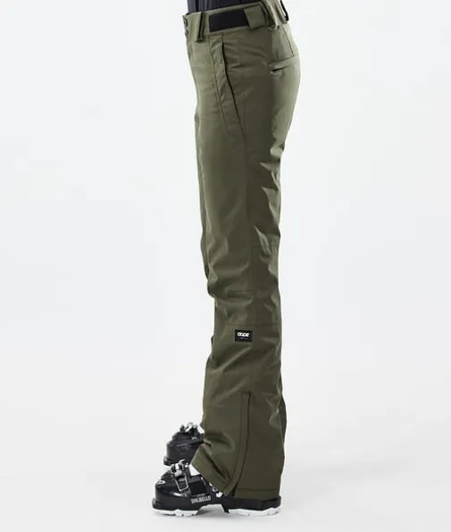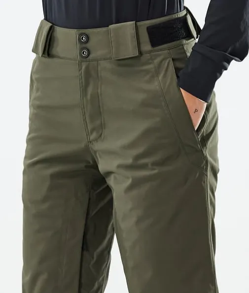 Con W Skibukse Dame Olive Green|Con-buksene blander form og funksjon på en perfekt måte, og det er gode grunner til at de er en favoritt for teamet og rytterne. Denne buksen er spesiell fordi den ikke bare har den smale, ettersittende passformen du har ønsket deg, men er også superkomfortabel og gir total bevegelsesfrihet takket være det forbedrede toveis stretch-skallmaterialet. Så du får fortsatt den smale profilen, men uten å hale og dra i stoffet, noe som gjør Con til det optimale paret med slimfit-bukser for fjellet.