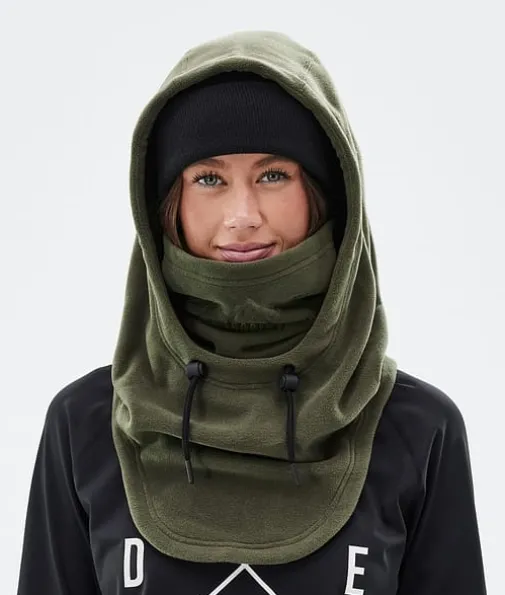 Cozy Hood II Ansiktsmasker Olive Green|Cozy Hood fra Dope er en revolusjon innen halsvarmere. Den er laget av en supermyk 300 g/m2 polyestermikrofleece, noe som holder deg varm hele dagen lang. Det er en hette kombinert med halstube som du kan trekke ned når du trenger litt luft, og med justeringssnorer på hetten slik at du kan få perfekt passform, er denne halsvarmeren mer allsidig enn du skulle tro. Men hva med hjelm, tenker du kanskje? Du kan være trygg på at vi har laget disse halsvarmerne med hjelm i tankene. Du trekker den bare opp over hjelmen. Ha den nede rundt halsen når du kjører rolig, og trekk den opp når du skal kjøre røft. Cozy Hood er en all-mountain halsvarmer som ser bra ut og føles enda bedre.