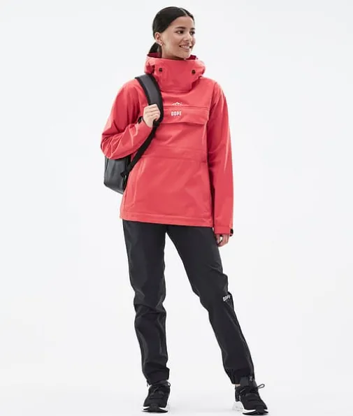 Downpour W Regnjakke Dame Coral|Downpour-jakken er et nytt innslag i Dope-serien, som benytter seg av vårt fantastiske, fjærlette stoff i tre lag. Jakken er designet med innovativ fireveis stretch, og er den mest nedpakkbare, pålitelige og mobilitetsfokuserte jakken i serien. Når du trenger en jakke du kan stole på i all slags vær, og en som ikke tar opp plass i sekken, er Downpour klar til å oppfylle.