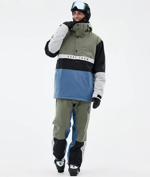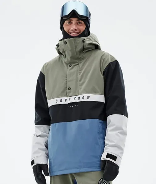 Legacy Track Skijakke Herre Greenish/Light Grey/Black/Blue Steel|Legacy kaster blikket tilbake til 90-tallet og kombinerer en løs anorakkpassform med tekniske kvaliteter fra avanserte skijakker. Den er laget med tanke på rolige økter og er lett å kaste på eller av når det passer. Når du ikke trenger fancy og klumpete skijakkefunksjoner som glidelåser er Legacy jakken for deg. Nå som den også har det utrolig slitesterke skallet med fireveis stretch, kan du være trygg på at Legacy gjør inntrykk der du ferdes.