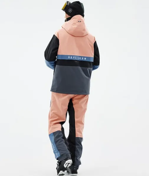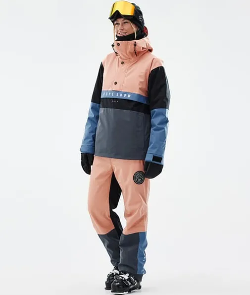 Legacy Track W Skijakke Dame Faded Peach/Blue Steel/Black/Metal Blue|Legacy kaster blikket tilbake til 90-tallet og kombinerer en løs anorakkpassform med tekniske kvaliteter fra avanserte skijakker. Den er laget med tanke på rolige økter og er lett å kaste på eller av når det passer. Når du ikke trenger fancy og klumpete skijakkefunksjoner som glidelåser er Legacy jakken for deg. Nå som den også har det utrolig slitesterke skallet med fireveis stretch, kan du være trygg på at Legacy gjør inntrykk der du ferdes.