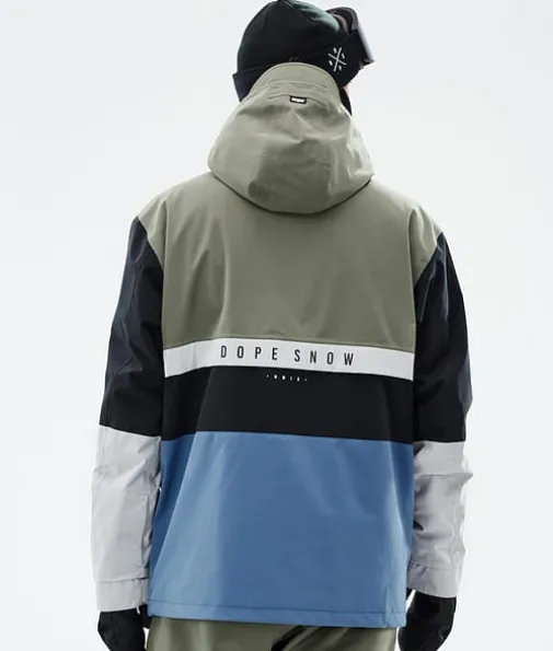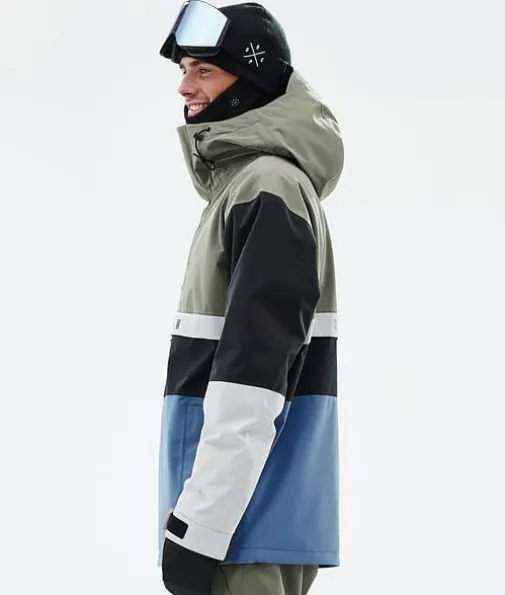 Legacy Track Snowboardjakke Herre Greenish/Light Grey/Black/Blue Steel|Legacy kaster blikket tilbake til 90-tallet og kombinerer en løs anorakkpassform med tekniske kvaliteter fra avanserte skijakker. Den er laget med tanke på rolige økter og er lett å kaste på eller av når det passer. Når du ikke trenger fancy og klumpete skijakkefunksjoner som glidelåser er Legacy jakken for deg. Nå som den også har det utrolig slitesterke skallet med fireveis stretch, kan du være trygg på at Legacy gjør inntrykk der du ferdes.