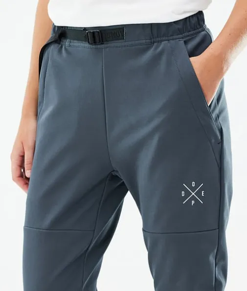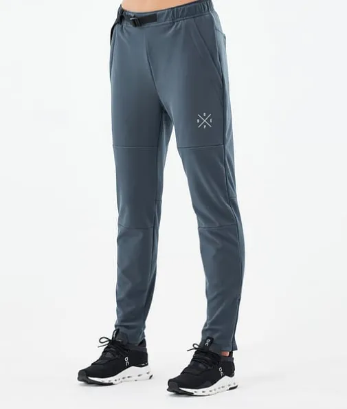 Nomad W Turbukse Dame Metal Blue|Nomad-buksene fra Dope byr på fantastisk ytelse i fjellet, takket være det ergonomisk snitt og turfokusert design. Med en superholdbar softshell-konstruksjon med 4-veis stretch – disse koniske friluftsbuksene har en elastisk linning med integrert belte for total komfort, samt sikker oppbevaring takket være glidelåslommene med innebygd telefon ficka.