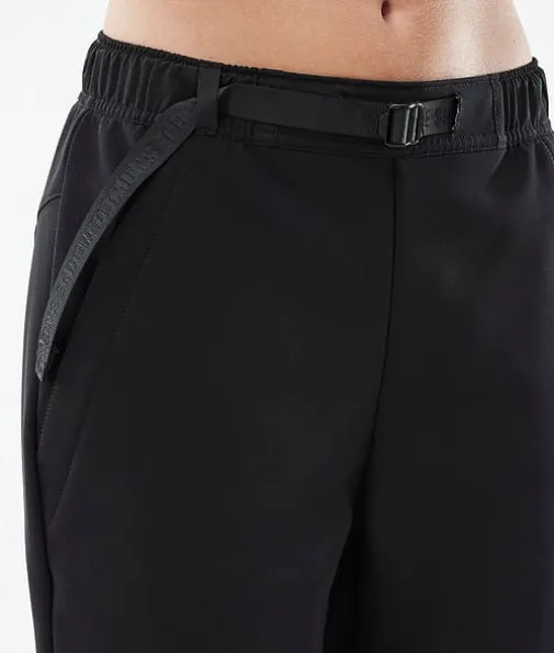Nomad W Turbukse Dame Black|Nomad-buksene fra Dope byr på fantastisk ytelse i fjellet, takket være det ergonomisk snitt og turfokusert design. Med en superholdbar softshell-konstruksjon med 4-veis stretch – disse koniske friluftsbuksene har en elastisk linning med integrert belte for total komfort, samt sikker oppbevaring takket være glidelåslommene med innebygd telefon ficka.