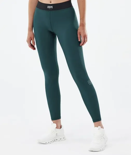 Razor Leggings Dame Bottle Green|Razor-leggings fra Dope er et superkomfortabelt par elastiske treningsleggings som er perfekte for å presse deg litt hardere. Med en mid-rise midje komplett med en behagelig elastisk linning, er disse leggings designet for å redusere presset i livet, og gir maksimal mobilitet. Vi ga dem flatlock-sømmer da, for å eliminere gnagsår, og et ankelkutt for total kompatibilitet med sokker og trenere.