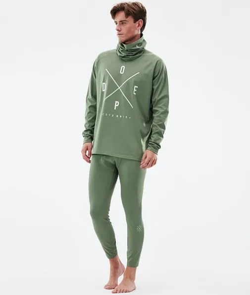Snuggle Superundertøy overdel Herre 2X-Up Moss Green|En ny generasjon med Snuggle-superundertøy er den perfekte følgesvennen når du skal ut på vintereventyr. Snuggle er laget med en ekstremt stretchy blanding av spandex og polyester, som puster svært godt, og Anti-Odour HeiQ-teknologi. Snuggle er klar for selv de mest aktive dagene på fjellet. Den har en minimal turtleneck-krage for å holde bedre på varmen i kaldt vær, og en ekstra separat halsvarmer som gir optimal allsidighet, så du kan holde deg varm og god eller lett og luftig. Den er nå utstyrt med et forbedret Peached-lag som gir uslåelig komfort, i tillegg til forsterkede flate sømmer som eliminerer gnaging og gir ekstrem slitestyrke. Snuggle-superundertøy er utviklet over flere år, og resultatet er det mest komfortable og funksjonelle du kan få tak i: ut på fjellet hver dag, hele sesongen, og vær fullstendig komfortabel.