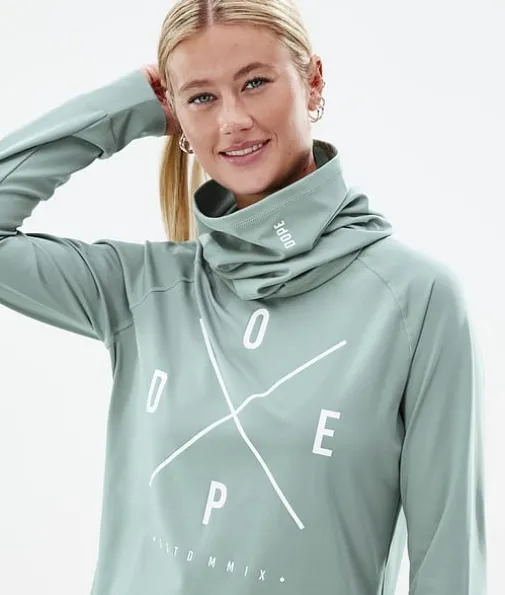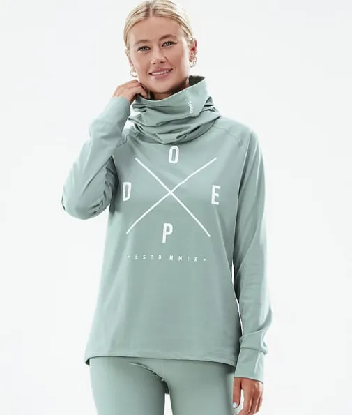 Snuggle W 2022 Superundertøy overdel Dame 2X-Up Faded Green|Snuggle fra Dope er akkurat så snuggly som baselag kan få blitt. Den har en superstretchy og komfortabel poly-spandex konstruksjon med glatt ytterside som aktivt fjerner fukt vekk fra huden, og en myk og børstet innside av fleece som er myk mot huden og holder deg varm dagen lang. Vi har også lagt til noen spesielle Dope tillegg som gjør denne helt perfekt. Den har nemlig en perfekt fit – ikke for tettsittende og ikke for løs. Helt rett for en lang dag i bakkene. Med spandex innholdet, så vil den kunne passe til alle mulige kroppstyper og former uten å gi noe ekstra trykk, noe som betyr komfort for absolutt alle. Til slutt har vi lagt til en rullet turtleneck for temperaturregulering, som gjør Snuggle til en av de aller beste baselagene vi har hatt på lager.