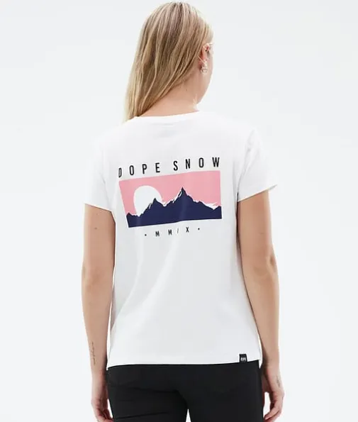 Standard W T-shirt Dame Silhouette White|Standard-T-skjorten er det perfekte plagget for ethvert eventyr. Den er laget av et supermykt Oekotext 100-sertifisert 260 gsm single jersey-stoff med en 63 % organisk bomull/37 % Tencel-blandingskonstruksjon, og den er også ekstremt slitesterk. Vi gav den vår egen Dope-signaturpassform, og vi slengte i tillegg på favorittdesignene våre for å gi den det lille ekstra. Enten det er som et første kleslag en dag du vil utforske hele feriestedet, eller du er på stranda midt på sommeren, er Standard det perfekte valget hele året.