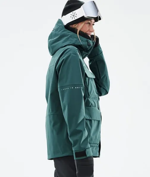 Zenith W Snowboardjakke Dame Bottle Green|Zenith er en jakke i avslappet og baggy stil med fire overdimensjonerte cargo-lommer, ekstremt slitesterkt ytterskall med fireveis stretch og en løs passform med retrovibber. Zenith er inspirert av Legacy-jakken, som har innstillingen at less is more, og denne jakken har det aller viktigste du trenger for en lang dag i fjellet. Den er allsidig og laget for å være på topp hele sesongen, samtidig som det lette designet er med på å sette friheten i førersetet – Zenith er jakken du kommer til å ta med deg i vinter, gang etter gang.