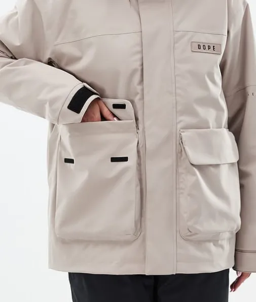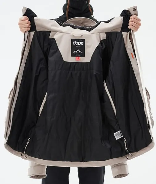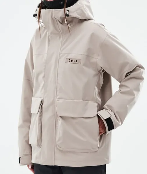 Acme W Skijakke Dame Sand|Møt jakken Dope Acme! Acme har strømlinjeformet design, clean, knappeløs front og to store sidelommer, som til sammen er en blanding av funksjonalitet og stil. Den har retro passform som kan brukes som den er, eller strammet med trekksnoren nederst for en kortere, mer firkantet stil. Materialet med 4-veis stretch gir maksimal bevegelsesfrihet, og Acme leverer på alle de viktigste funksjonene du trenger, uten å bli klumpete. Denne jakken er ekstremt allsidig og lett, og er perfekt for en lang sesong på fjellet – dette kan fort bli førstevalget for nye vintereventyr.