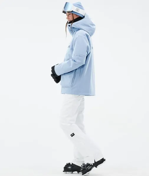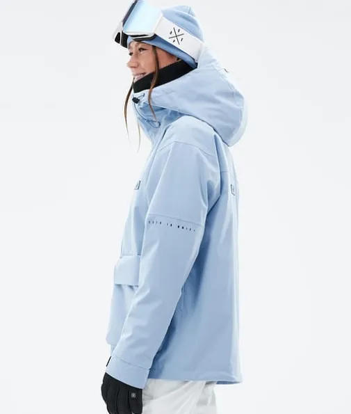 Acme W Skijakke Dame Light Blue|Møt jakken Dope Acme! Acme har strømlinjeformet design, clean, knappeløs front og to store sidelommer, som til sammen er en blanding av funksjonalitet og stil. Den har retro passform som kan brukes som den er, eller strammet med trekksnoren nederst for en kortere, mer firkantet stil. Materialet med 4-veis stretch gir maksimal bevegelsesfrihet, og Acme leverer på alle de viktigste funksjonene du trenger, uten å bli klumpete. Denne jakken er ekstremt allsidig og lett, og er perfekt for en lang sesong på fjellet – dette kan fort bli førstevalget for nye vintereventyr.