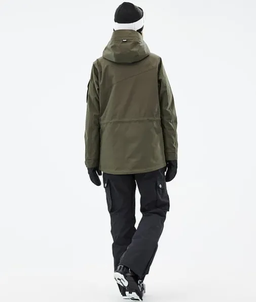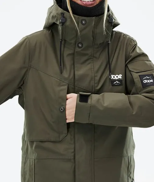 Adept W Skijakke Dame Olive Green/Black|Enkelhet omdefinert. Adept er en pålitelig glidelåsjakke med alle funksjonene du trenger for en lang dag i bakken. Adept er veldig vanntett, holdbart og er designet med tanke på hele fjellet, og er en klassiker i Dope Snow-serien, og med god grunn også. Så ta farvel med å bytte jakker på farten og velg den siste du noen gang vil eie. Når det gjelder å krysse av alle boksene, gjør denne det. En jakke som virkelig kan gjøre alt.