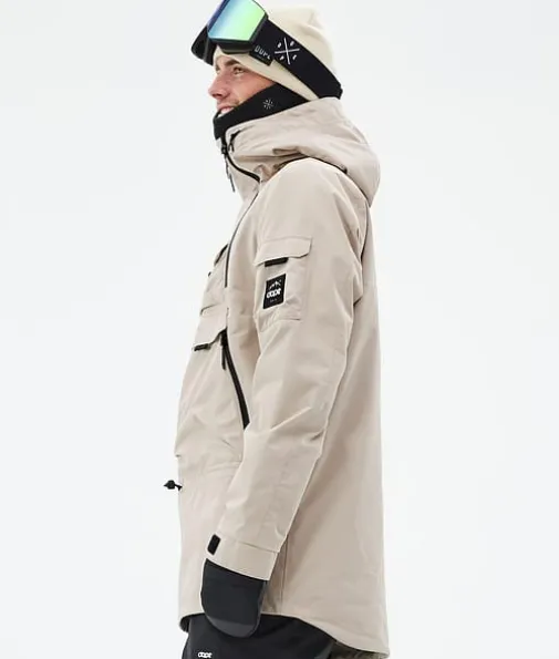 Akin Snowboardjakke Herre Sand|Akin er alt du noen gang ønsket deg i en jakke, og mye mer. Vi hentet inspirasjon fra old school-jakker og pyntet denne med syv ytterlommer. Aldri bekymre deg igjen med dette fantastiske designet. Bare zip opp, last opp, og gå inn i det store ukjente. Akin er vanntett og isolert nok til å takle det tøffeste været, og er en enkel parkcruiser og en stor fjellknusing. Mic drop, bare så det er sagt.