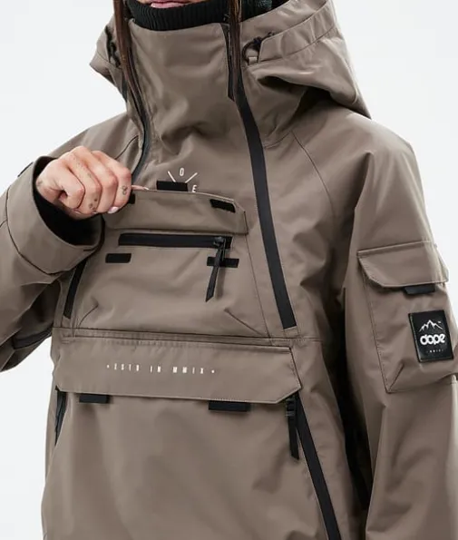 Akin W Snowboardjakke Dame Walnut|Akin er alt du noen gang ønsket deg i en jakke, og mye mer. Vi hentet inspirasjon fra old school-jakker og pyntet denne med syv ytterlommer. Aldri bekymre deg igjen med dette fantastiske designet. Bare zip opp, last opp, og gå inn i det store ukjente. Akin er vanntett og isolert nok til å takle det tøffeste været, og er en enkel parkcruiser og en stor fjellknusing. Mic drop, bare så det er sagt.